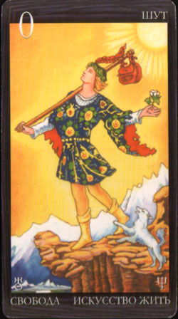 На классической карте мы обычно видим бродягу с узелком за спиной, шагающего к краю обрыва. Около него находится собака, которая то ли кусает его за ногу, предупреждая об опасности, то ли сопровождает его в этом непредсказуемом приключении. В галерее Таро Тота Дурак совершенно иной. Он стоит обеими ногами в воздухе, тем самым олицетворяя воздушную стихию. Сам персонаж карты сочетает в себе сразу несколько архетипов: это и языческий Зелёный Человек, олицетворяющий весну, и Парсифаль, отправившийся в путь за Священным Граалем, и египетский Гарпократ — бог молчания, и Дионис — бог вдохновения, сил природы и экстаза. С другой стороны, Голубь и Бабочка, изображённые на карте, явно намекают на то, что наш Дурак — не кто иной как сам Святой Дух. Если мы присмотримся повнимательнее, то увидим на карте Тигра, кусающего Дурака за ногу, Крокодила, солнечный диск, которым закрыты гениталии персонажа, витки спирали и множество других многозначных символов. Согласитесь, что кроулианский Дурак совсем не так прост, как классический?